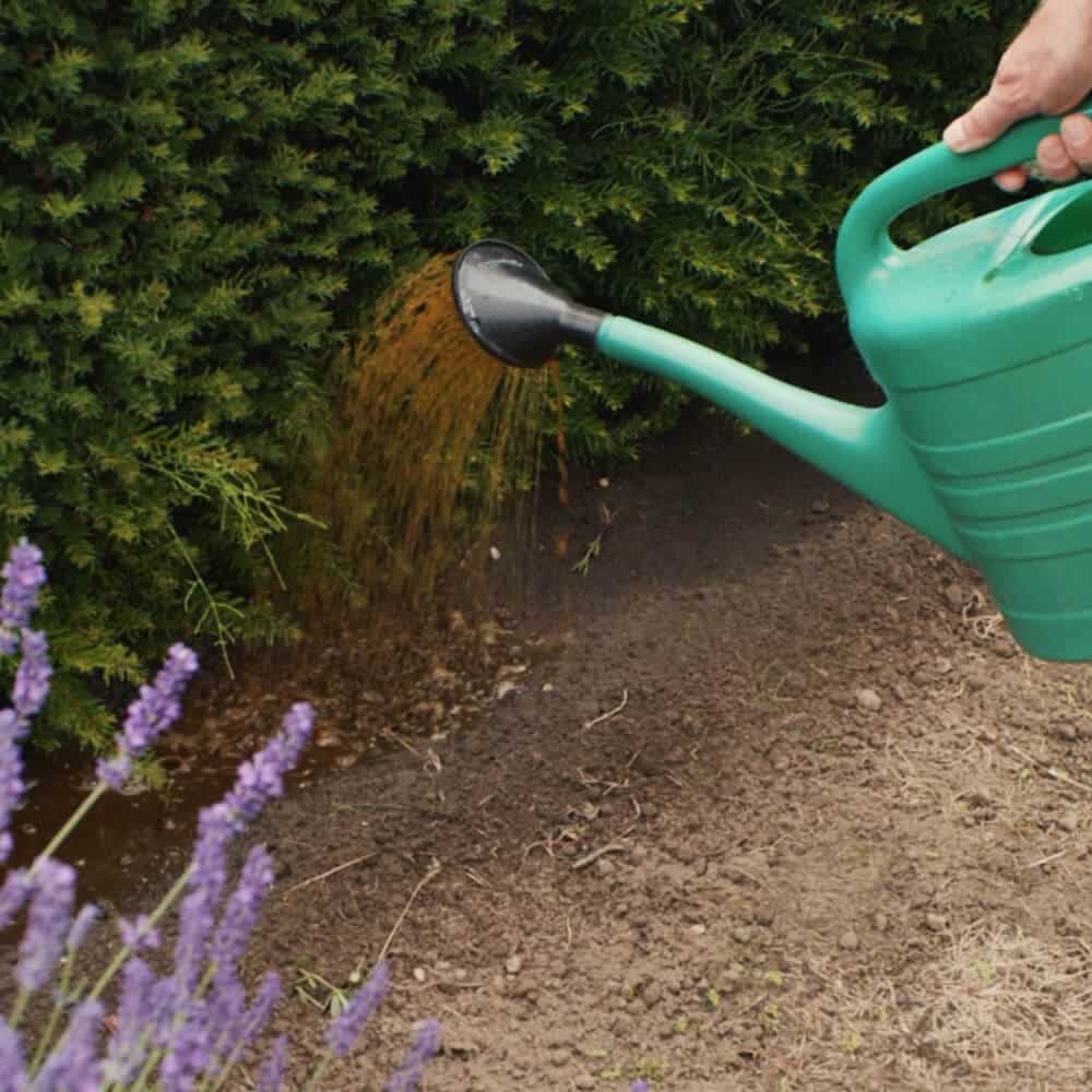 Nach dem Düngen sollte wie gewohnt gegossen werden. Unserer Meinung nach ist es am besten, Thujen nach dieser Anleitung zu gießen. Eiben, Kirschlorbeer, Buchen und fast alle anderen Heckenpflanzenarten gießt man dagegen nach dieser Anleitung.